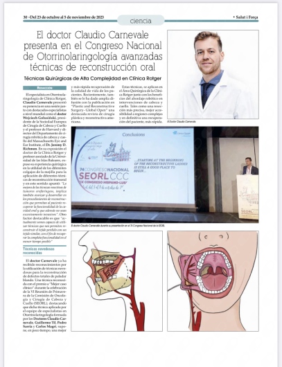 El Dr. Claudio Carnevale es especialista en Otorrinolaringología y Cirugía de Cabeza y Cuello en Palma de Mallorca, con amplia experiencia en cirugía oncológica y reconstructiva, cirugía de oído y estética facial. Ofrece atención personalizada y tratamientos de vanguardia, incluyendo rinoplastia estética y funcional, implantes cocleares, reconstrucción transoral y cirugía robótica avanzada, garantizando resultados precisos y naturales. En la Clínica Rotger combina tecnología de última generación con un enfoque cercano, garantizando diagnósticos precisos y tratamientos eficaces. Su compromiso con la excelencia y la formación continua lo convierten en un referente destacado de la otorrinolaringología en Baleares